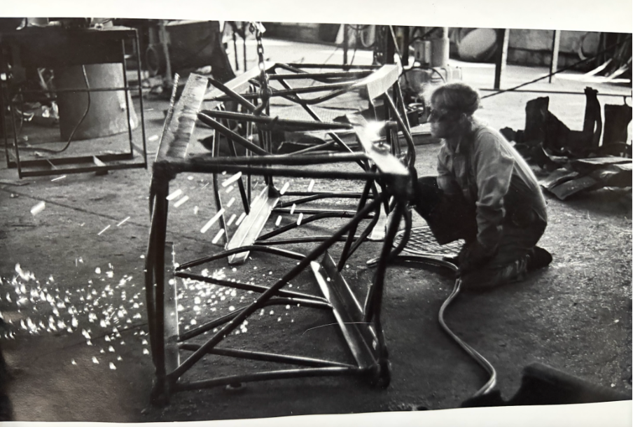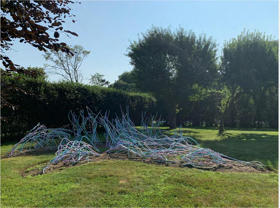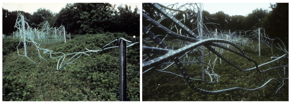 MP: Linear steel rods as support in concrete used during highway and building construction. I’m basically a found object sculptor. They were taking down the structure of the West Side Highway and I fell in love with the tons of destroyed rebar there. I’d hire big trucks to bring the rebar to the grounds of the group shows and then weld site-specifically. It was cheaper to pay for the truck than pay for the price of the steel.