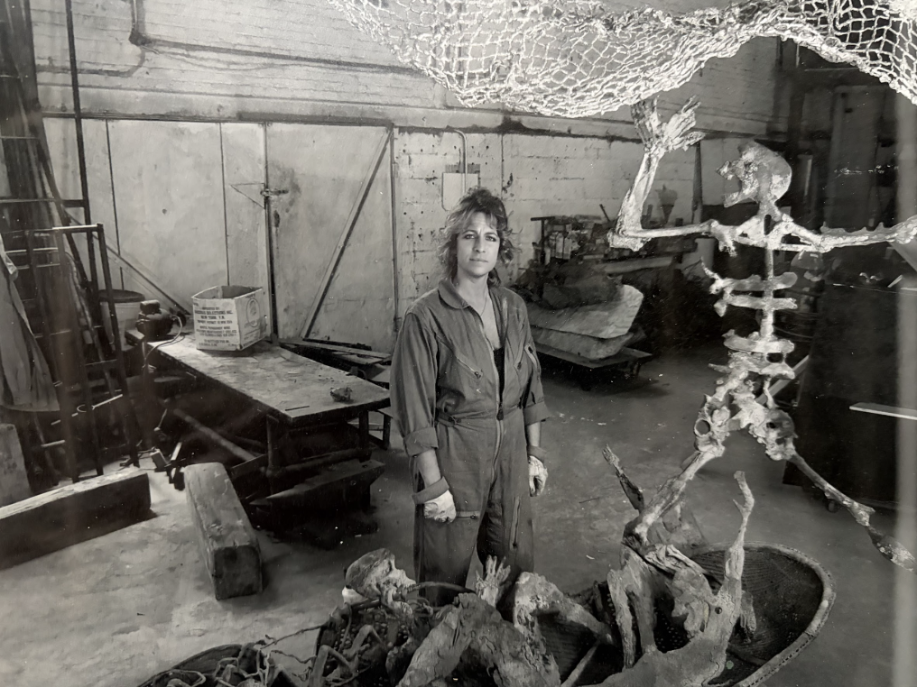 The sculpture went through many transformations, but it began with a nineteenth-century antique wedding petticoat that Joan’s [Semmel] daughter, Patti, gave me the previous Thanksgiving. When I hung it high in the studio on a rusty chain hoist (that I’d been saving for years!), I then remembered standing in sculptor Isaac Witkin’s foundry in New Jersey, on a blueberry farm amongst piles of crap everywhere. He’s shaking his finger and telling me, “But Marsha, NEVER throw anything out. You never know when you’re going to use it.” He was, of course, right!